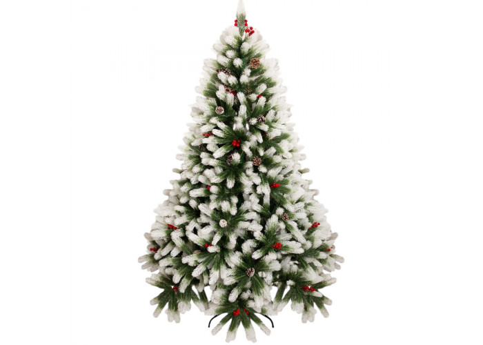 • Декор: Натуральные шишки и яркие искусственные ягоды придают ёлке праздничный и изысканный вид.